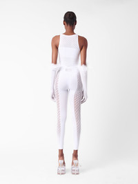 The Rhinestoned Janice Jumpsuit really needs no introduction. Worn this year by the likes of Vanessa Hudgens, Bia, Charli XCX, Izabel Gourlart, Stefflon Don & Jordyn Woods to name a few, this romper is a certified party staple.Murmurations of iridescent rhinestones swarm front & back, iconic cutout peep holes descend on the bust & legs, and our signature suctioning shapewear sweeps your curves to perfection. Paired with our iconic POSTER GIRL gloves for the perfect festive bundle. POSTER GIRL's brand logo is always stamped into the lower back of each garment, confirming its authenticity. This jumpsuit is One Size fits most UK 6 - 18 This product is sold as a set. COMPOSITION & CARE - 98% Nylon 2% Spandex