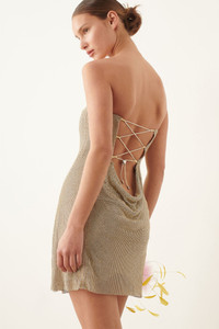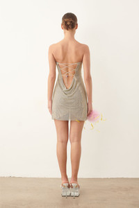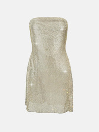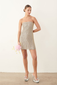 Movement has a new light with our captivating Selena Dress dress. Dazzling with rhinestones, this strapless dress transmits sensuality and glamour. This yellow golden dress of dreams features a tie up back which can be adjusted for the perfect fit. Make an entrance in this yellow golden dress of dreams, that is guaranteed to captivate every audience. - Strapless bandeau dress - Tie-up back detail - Composition: 50% Aluminium 50% Glass - Model Height: 5'6" / 172cm and wears size S Sustainability: Each chainmail piece is constructed by hand in London. Care: Chainmail is unlike most fabrics so it is important to take care when trying on. Chainmail ranges from XS-XL and does not stretch. Never force the garment on otherwise the chainmail will rip. If you are in-between sizes, we recommend sizing up.