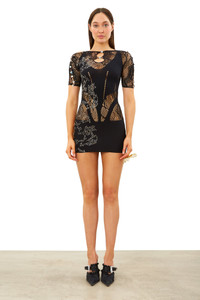 The Stella Dress is fresh from the SS23 runway featuring our brand new beautiful snake print lace and embellishment details that descent along the body. With cut-out heart crystal embellishments this is the perfect mini dress for date night or girls night out. POSTER GIRL's shapewear category is designed to suction you in all the right places, releasing and supporting your natural curves where needed. Always remember, the brand logo is stamped into the lower back of all shapewear designs as POSTER GIRL's mark of authenticity. As worn by JADE. The dress is one size fits most ( UK 6 - 18 )