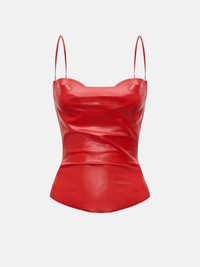 Turn heads in our Tart Top. Adjustable straps with removable push-up bra padding for your desired fit. Boning panels with steel boning positioned in the centre back at the fastening for shape and support. Designed with a modesty panel to hide skin and heart eyelets with an elastic lace-up back to still give it a sexy touch. Double layered front adds for extra support. Pair with the Rooney Hotpants in Red and Glass Slippers for the complete look. Don't forget to use the latex wipe to give it that extra shine. - Ultra shine top - Elastic corset lace up back - Adjustable straps - Boning panels - No underwire - 100% latex - Model wears size S - Model Height: 5'10 178cm