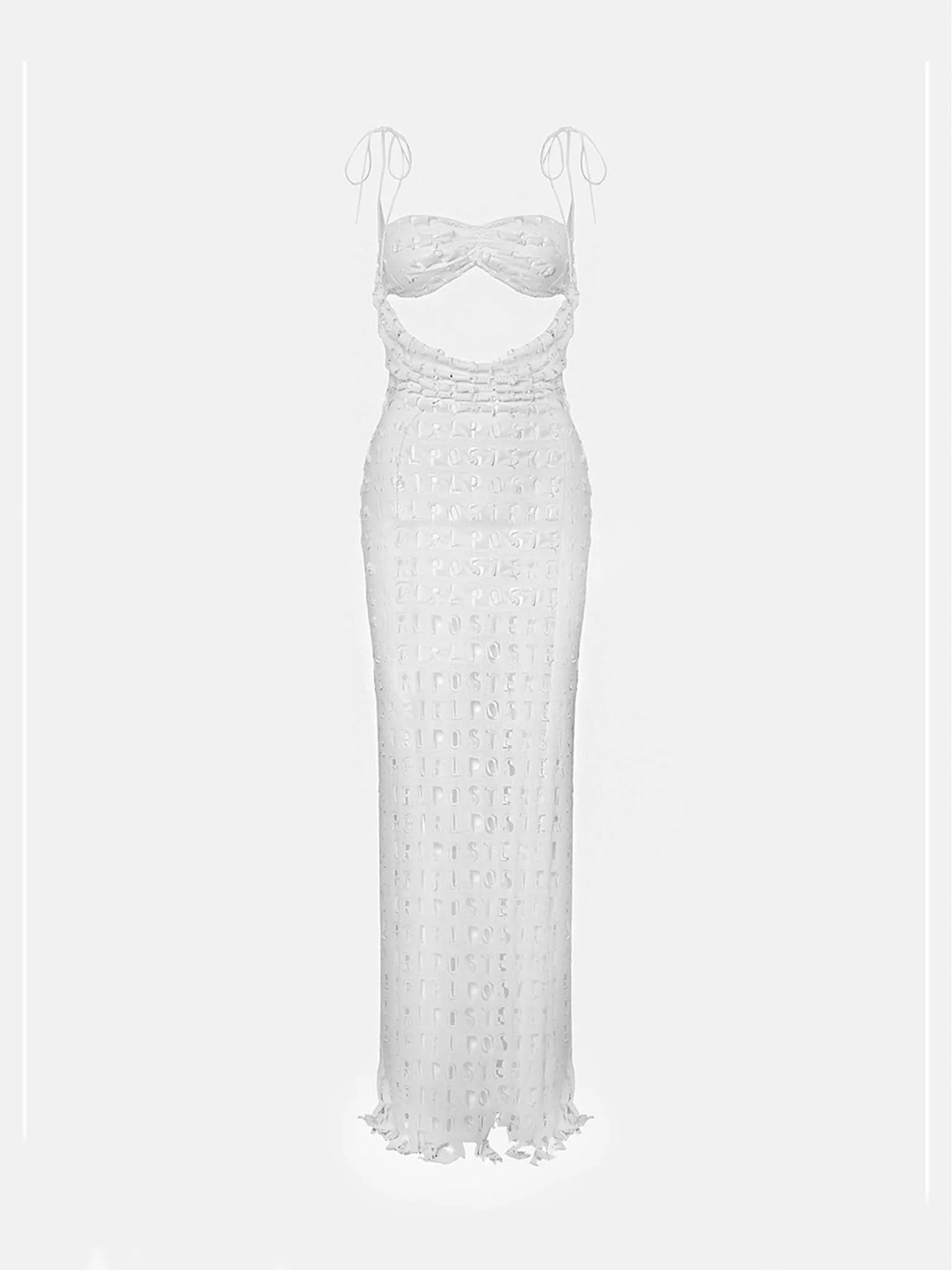 The Verity Dress debuts our new custom POSTER GIRL laser cut collection. Cut from a power mesh fabric and designed for a figure skimming fit, this dress features a cut out at the bodice and adjustable tie up straps. The Verity dress captures the high octane glamour emblematic of POSTER GIRL, making it the perfect choice for any destination or event dressing. - POSTER GIRL custom logo laser cutting - Adjustable bra back fastening - Tie-up spaghetti straps - Model Height: 5' 10½' / 179.5cm and wears size M