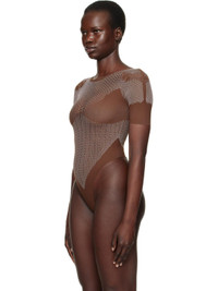 Semi-sheer stretch nylon-blend jersey and mesh bodysuit. · Round neck · Press-stud fastening at bottom · Logo embroidered at shoulders and back Supplier color: Old Money Brown 45% polyamide, 43% polyester, 12% elastane. Made in Italy 251770F358010