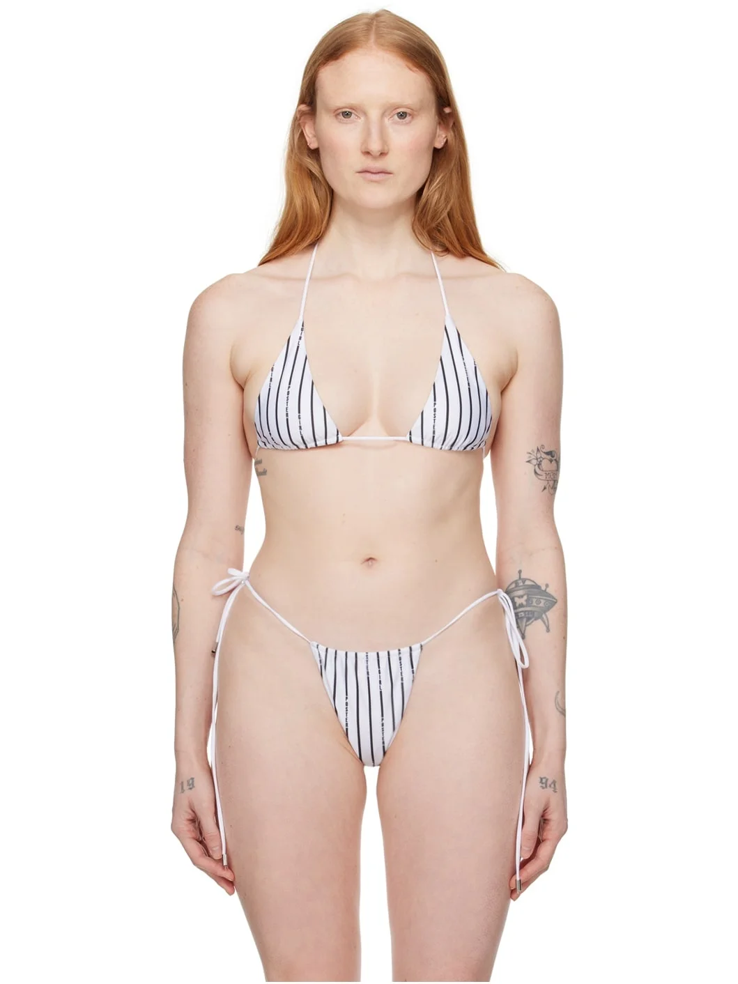 Reversible stretch recycled polyester jersey bikini top. Stripes and logos printed throughout. Reverse in white stretch recycled polyester jersey. · Self-tie halter strap · Self-tie fastening at back · Fully lined Supplier color: White/Black 78% recycled polyester, 22% elastane. Made in United Kingdom 241770F105005
