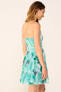 Crafted from cotton eyelet stripe Strapless with lining on the top Smocked back Removable belt with loops, finished with zigzag lace Zigzag lace trim at the hem Each piece is crafted from an exclusive print, hand-applied using traditional, time-honored techniques. This rare artisanal expertise results in slight color variations, a hallmark of the unique character of every creation. Victoria wears a size S (US 4 / EU 36 / UK 8) and is 5'8" (172 cm) tall. Poupette St Barth - Your Styles