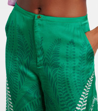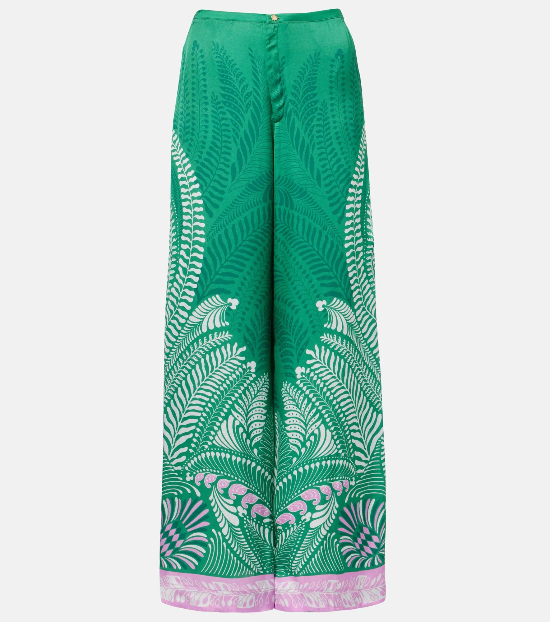 Embrace elegance with this design from Poupette St Barth. Crafted from printed satin, the Clea pants are cut to a high-rise, flowing wide-leg silhouette. Product Details - Material: 100% viscose - Care instructions: hand wash - Made in Indonesia - Designer color name: Green Oolong - Item color: green - Hardware color: gold - Pockets: slant pockets - Closure: zipper fly, button fastening - Item number: P01126457 Size & Fit - True to size - Non-stretchy fabric - Wide-leg - High-waisted - The model seen in the picture is 178cm-5'10" and wearing a size XS