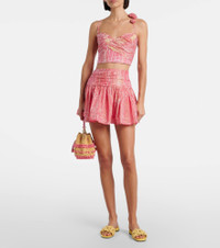 Embrace elegance with this design from Poupette St Barth. Crafted from cotton blend lame, the Colleen miniskirt features an elasticated waistband, flowing skirt, and charming all-over print. Product Details - Material: 85% cotton, 15% metallic fibres - Care instructions: hand wash - Made in Indonesia - Designer color name: Pink Akoya - Item color: pink - Trim: 100% viscose - Elasticated waistband - Item number: P01126448 Size & Fit - True to size - Elasticated waist - Non-stretchy fabric - The model seen in the picture is 178cm-5'10" and wearing a size XS