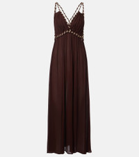Center your vacation wardrobe around Poupette St Barth's beautifully breezy styles. The Collette maxi dress features an open-back design with thigh-high slits and adjustable cords at the waist and neckline. Product Details - Material: 100% viscose - Care instructions: hand wash - Made in Indonesia - Designer color name: Choco Plain - Item color: brown - Closure: self-ties - Item number: P01042365 Size & Fit - True to size - Low back - Semi-sheer - Cinched waist - Non-stretchy fabric - The model seen in the picture is 178cm-5'10" and wearing a size XS