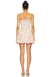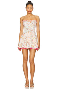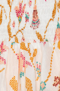 - Self: 85% cotton 15% metallic Lining: 100% viscose - Hand wash - Partially lined - Pull-on styling - Smocked bodice - Ruffled trim - Midweight linen fabric with metallic detail - Neckline to hem measures approx 23" in length - Revolve Style No. PSTB-WD300 - Manufacturer Style No. WYRS25JKYYP