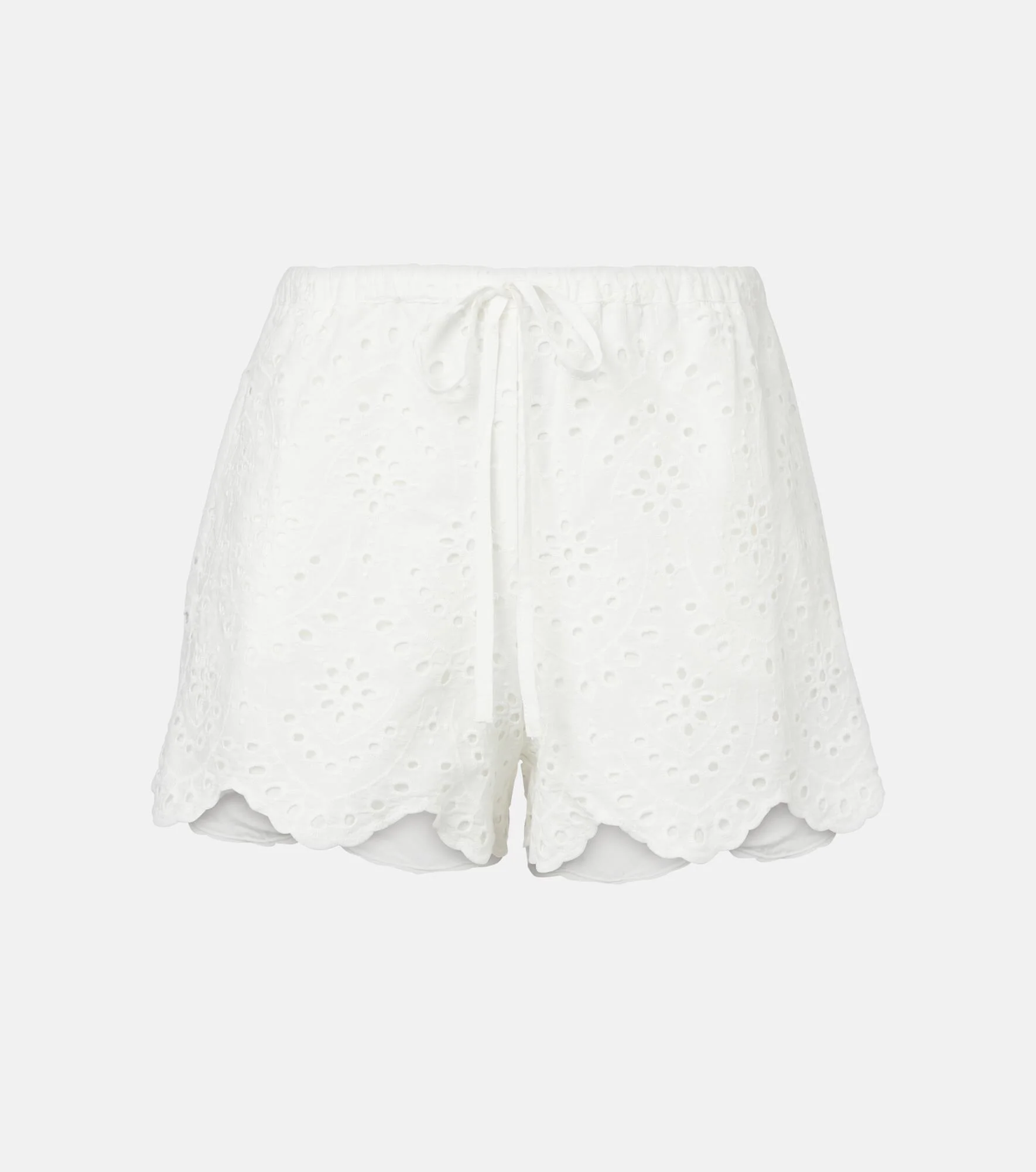 Center your vacation wardrobe around Poupette St Barth's beautifully breezy styles. Made from breathable cotton, the Cruse shorts feature an elasticated waistband for added comfort. Effortless and elegant, this pair is completed with a broderie anglaise trim. Product Details - Material: 100% cotton - Care instructions: hand wash - Made in Indonesia - Designer color name: Natural White Plain - Item color: white - Material II: 100% viscose - Pockets: side slit pockets - Item number: P01042421 Size & Fit - True to size - Elasticated waist - Adjustable at the waist - Non-stretchy fabric - Wide-leg - The model seen in the picture is 178cm-5'10" and wearing a size XS