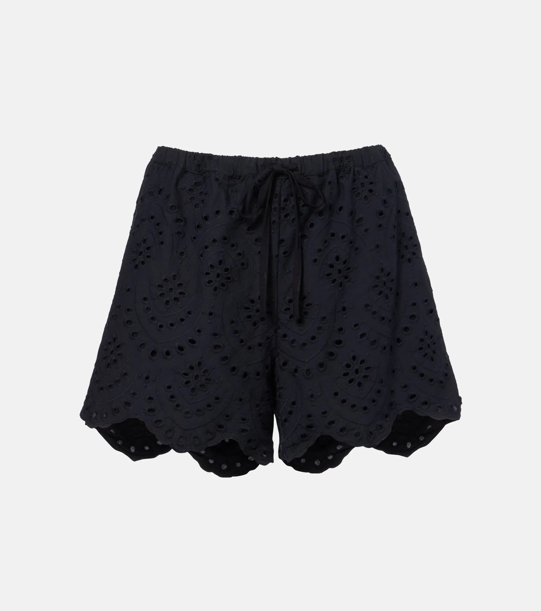 Center your vacation wardrobe around Poupette St Barth's beautifully breezy styles. Crafted from cotton, the Cruse shorts feature an elasticated waistband, a scalloped hemline, and a delicate broderie anglaise finish. Product Details - Material: 100% cotton - Care instructions: hand wash - Made in Indonesia - Designer color name: Black Plain - Item color: black - Embroidery: 100% viscose - Elasticated drawstring waist - Pockets: side slit pockets - Hem: scalloped - Item number: P01126467 Size & Fit - True to size - Elasticated waist - Adjustable at the waist - Non-stretchy fabric - Straight leg - The model seen in the picture is 178cm-5'10" and wearing a size XS