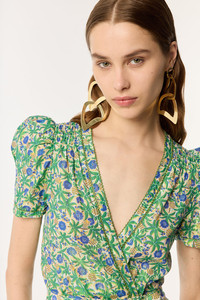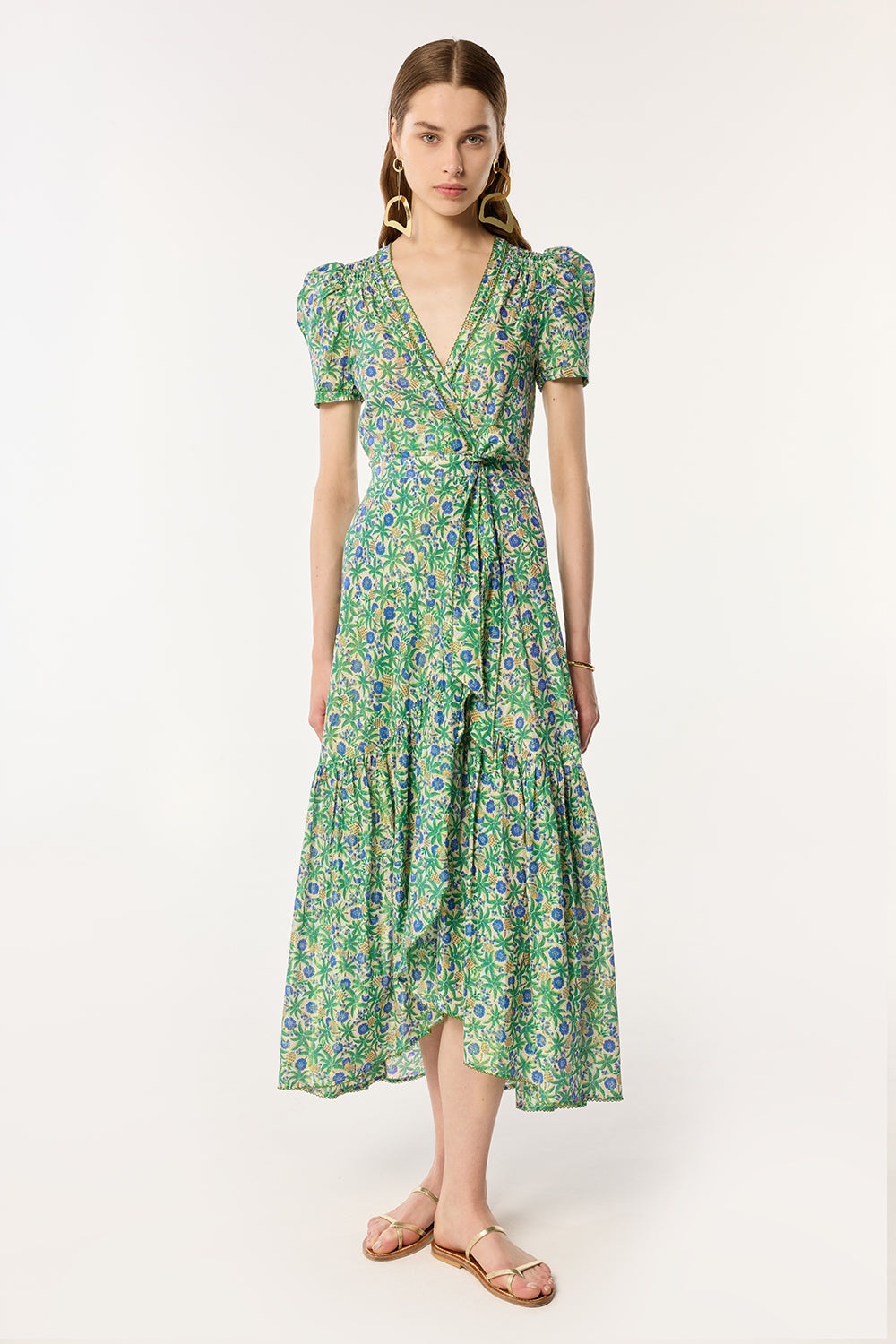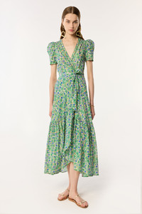 A cross over dress with a waist tie accent that defines the silhouette, Long Dress Baba features romantic balloon sleeves with delicate pleats for a chic and sophisticated touch. A look you'll stand out in and an easy way to show up in dreamy, elegant style to your summer events. Shown here in Blue Honolulu. Model wears a small size/US 4/EU 36/UK 8 and is 5'11/ 180 cm tall.