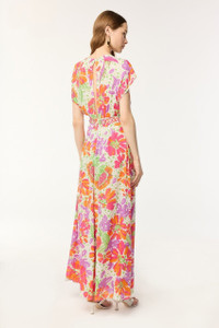 A long dress with an open waistband and crossed fabric bands. The neckline is accented by pleating and the back features an open slit design. Complete with a convenient and discreet zipper at the back. Shown here in Pink Artistic Flower. Our Viscose is certified eco-responsible. Model wears a small size/US 4/EU 36/UK 8 and is 5'9/ 180cm tall.