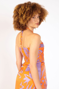 Long dress in viscose satin Strapless design with detachable neck strap Asymmetric pleated bodice with boning and anti-slip tape Pareo-style wrap skirt with shell-trimmed tassel tie at the waist Smocked back waist Invisible zip closure Ankle-length hem Crafted with LENZING™ ECOVERO™ branded viscose fibers, derived from renewable wood sources for a lower environmental impact. LENZING and ECOVERO are trademarks of Lenzing AG. Each piece is crafted from an exclusive print, hand-applied using traditional, time-honored techniques. This rare artisanal expertise results in slight color variations, a hallmark of the unique character of every creation. Aurelie wears a size S (US 4 / EU 36 / UK 8) and is 5'9" (175 cm) tall. Poupette St Barth - Your Styles