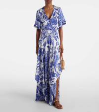 Center your vacation wardrobe around Poupette St Barth's beautifully breezy styles – the Mabelle dress flows in satin with a maxi-length silhouette, defined by delicate detailing and a relaxed elegance made for warm days. Product Details - Material: 100% viscose - Care instructions: hand wash - Made in Indonesia - Designer color name: White Royal Macro Stelis - Item color: multicolor, blue - Item number: P01042350 Size & Fit - True to size - Loose fit, elasticated waist - Non-stretchy fabric - The model seen in the picture is 178cm-5'10" and wearing a size XS