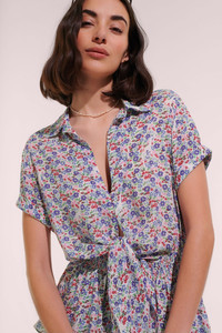 Discover the city chic of Mini Dress Brenda. With a V-neckline, adjustable bow, and smocked belt, it's effortlessly stylish. Ruffled skirt and picot stitch detailing add flair. Elevate your look with this versatile piece. Shown here in Blue Jardin. Our Viscose is certified eco-responsible. Model wears a small size/US 4/EU 36/UK 8 and is 5'9 / 177 cm tall. Composition 100% VISCOSE. Hand wash cold. Hang to dry.