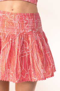 Skirt in cotton metallic Zigzag lace trim on hem Pleated waistband with smocked back Fully lined Each piece is crafted from an exclusive print, hand-applied using traditional, time-honored techniques. This rare artisanal expertise results in slight color variations, a hallmark of the unique character of every creation. Victoria wears a size S (US 4 / EU 36 / UK 8) and is 5'8" (172 cm) tall. Poupette St Barth - Your Styles