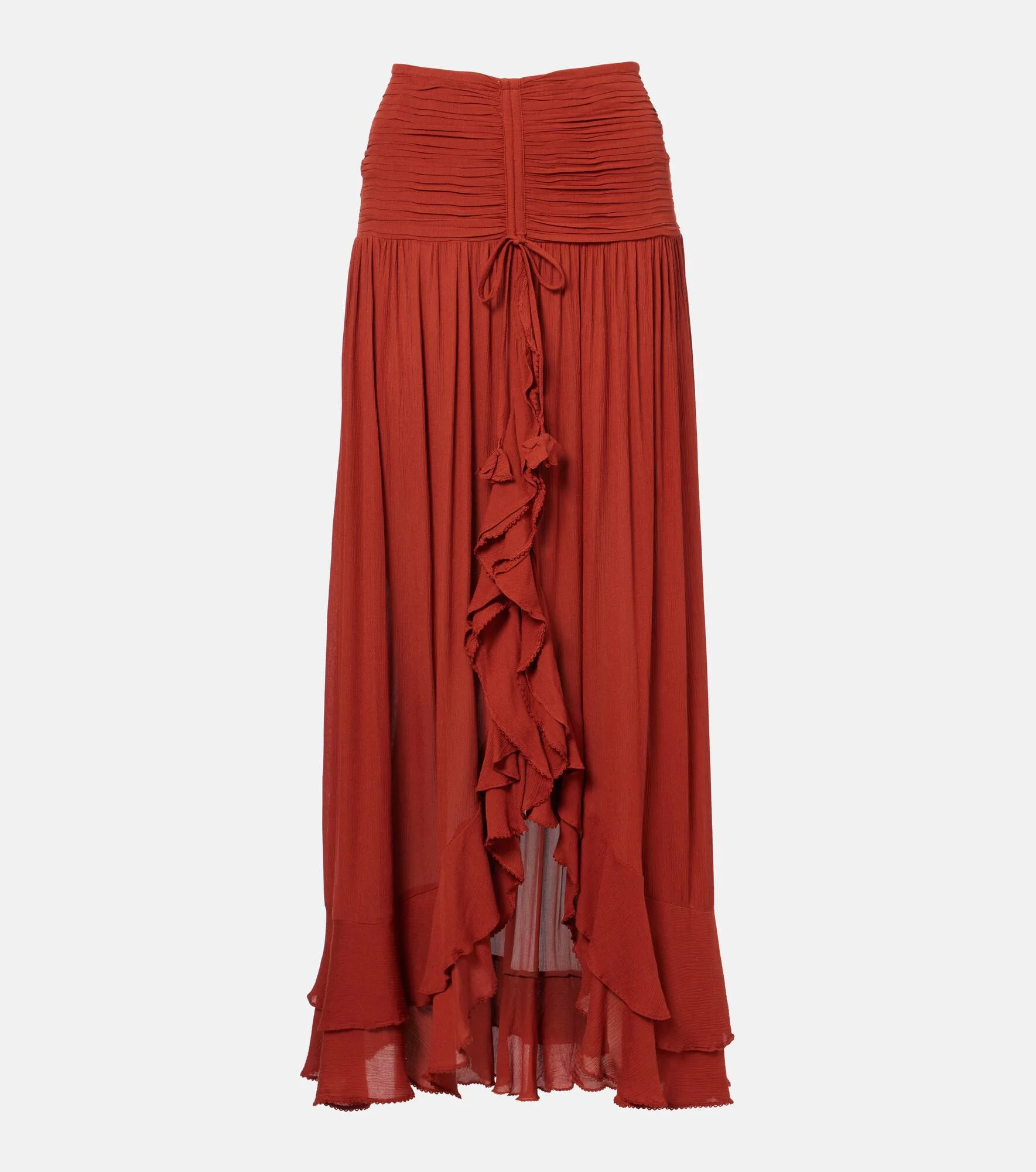 Embrace elegance with this design from Poupette St Barth. The Neree maxi skirt features a charming, asymmetrical hem and an elasticated waistband for comfort. Product Details - Material: 100% viscose - Care instructions: hand wash - Made in Indonesia - Designer color name: Rust 26 Plain - Item color: brown - Elasticated waistband - Hem: uneven - Item number: P01125336 Size & Fit - True to size - Elasticated waist - Non-stretchy fabric - The model seen in the picture is 178cm-5'10" and wearing a size XS