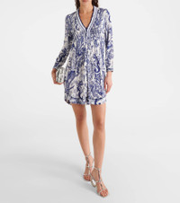 Product Details - Material: 100% viscose - Care instructions: hand wash - Made in Indonesia - Designer color name: Blue Ocean Royal - Cuff: buttoned - Collar: V-neck - Item number: P00922822 Size & Fit - True to size - Cinched waist - Non-stretchy fabric - The model seen in the picture is 178cm-5'10" and wearing a size XS