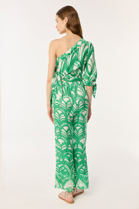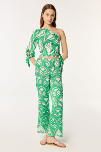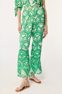 The CA©cile pants perfectly blend casual style and comfort. Its loose fit and elastic waistband offer freedom of movement and gently hug the body with a fluid silhouette. Perfect for long summer days or laid-back evenings, these pants pair easily with a simple top or a coordinated piece from the Poupette St Barth collection. Crafted with LENZING™ ECOVERO™ branded viscose fibers, derived from renewable wood sources for a lower environmental impact. LENZING™ and ECOVERO™ are trademarks of Lenzing AG. Shown here in the exclusive Green Himba pattern, hand-printed with screen frames. Nessie wears a size S (US 4 / EU 36 / UK 8) and is 5'9" (180 cm) tall.