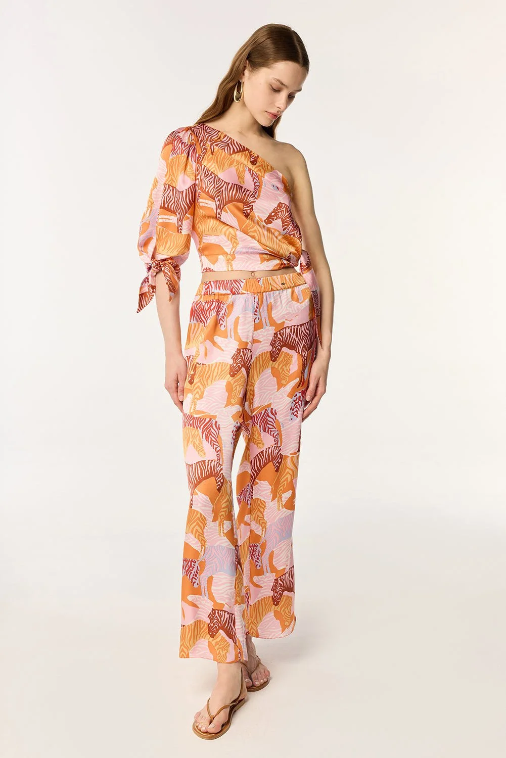 The Cecile pants perfectly blend casual style and comfort. Its loose fit and elastic waistband offer freedom of movement and gently hug the body with a fluid silhouette. Perfect for long summer days or laid-back evenings, these pants pair easily with a simple top or a coordinated piece from the Poupette St Barth collection. Crafted with LENZING™ ECOVERO™ branded viscose fibers, derived from renewable wood sources for a lower environmental impact. LENZING™ and ECOVERO™ are trademarks of Lenzing AG. Shown here in the exclusive Pink Ashanti pattern, hand-printed with screen frames. Nessie wears a size S (US 4 / EU 36 / UK 8) and is 5'9" (180 cm) tall.