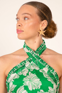 Top in viscose satin Knotted cord across body and neckline Covered button with elastic loop Adjustable back ties Crafted with LENZING™ ECOVERO™ branded viscose fibers, derived from renewable wood sources for a lower environmental impact. LENZING™ and ECOVERO™ are trademarks of Lenzing AG. Each piece is crafted from an exclusive print, hand-applied using traditional, time-honored techniques. This rare artisanal expertise results in slight color variations, a hallmark of the unique character of every creation. Aurelie wears a size S (US 4 / EU 36 / UK 8) and is 5'9" (175 cm) tall.