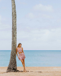 Smocked crop top for an adultescent look. The compliant cuff holds the figure whilst providing a stylish touch. The wide straps are tied at the shoulders to emphasize them. Shown here in Pink Jardin. Our Viscose is certified eco-responsible. Model wears an OS (One Size) and is 5'11/ 180 cm tall. Composition 100% VISCOSE. Hand wash cold. Hang to dry.