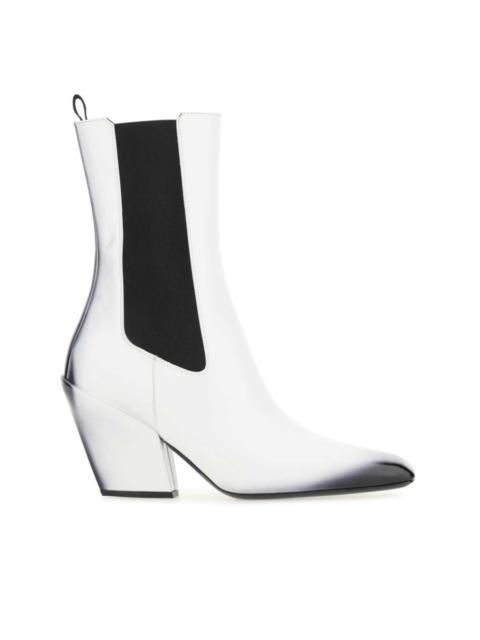 100mm leather Chelsea boots Highlights - White/black - Calf leather - Spray-paint effect - Pull-tab at the heel - Square toe - Elasticated side panels - Ankle-length - High sculpted heel - Rubber sole Composition Outer: Calf Leather 100% Sole: Rubber 100%, Calf Leather 100% Lining: Calf Leather 100% SIZE & FIT Measurement HEEL 3.93 in(10 cm)