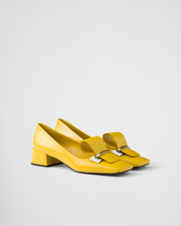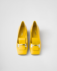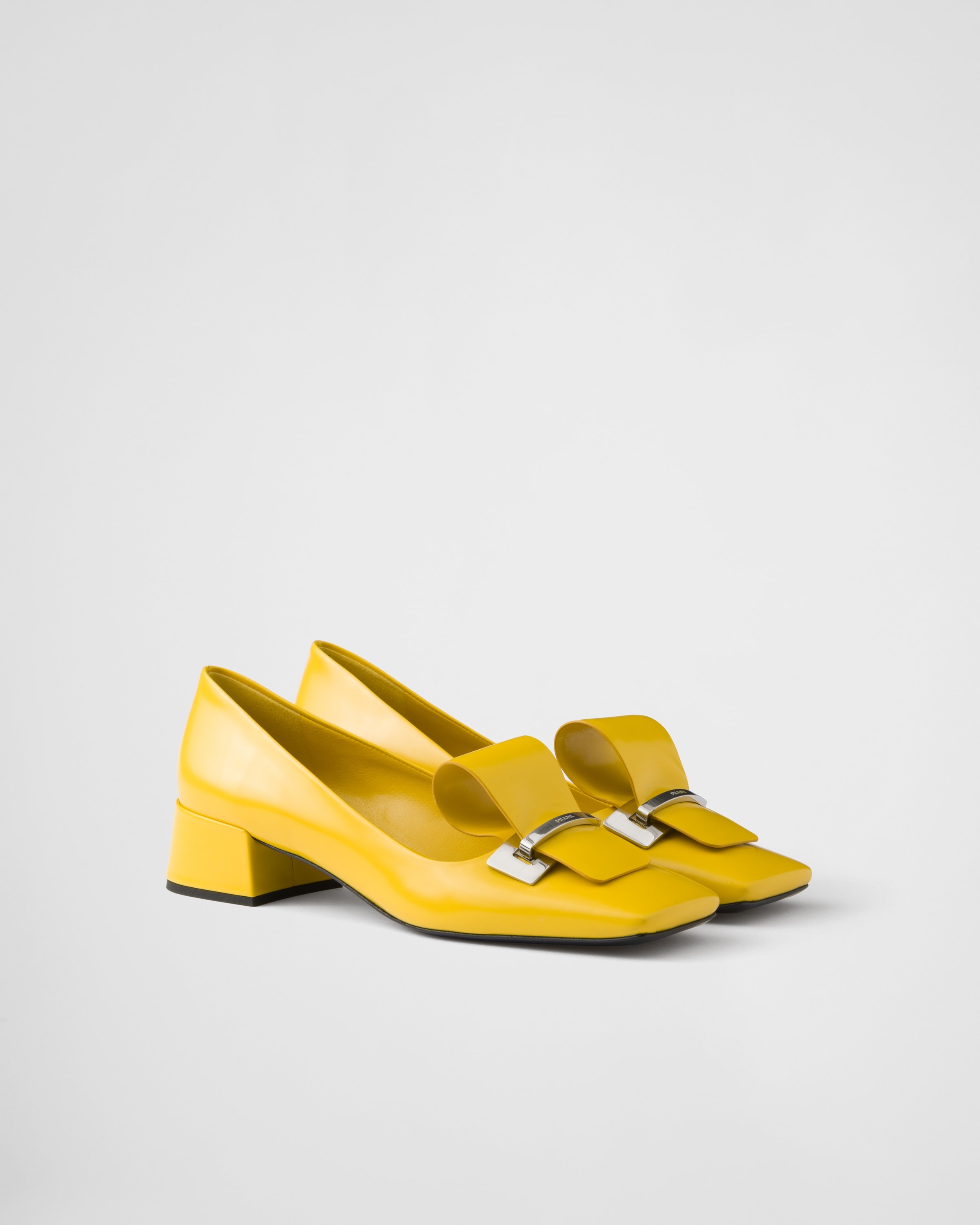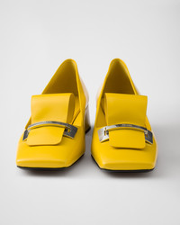 Retro influences and modernist lines are combined in these pumps with an architectural design. Dynamic details with a strong visual impact add a bold note to the sophisticated style enriched by the refined finish of brushed leather. - Product code: 1I963N_055_F0377_F_D035 - Upper with logo-engraved metal ornament - Leather and rubber sole with metal lettering logo - Leather-covered heel, height 35 mm - Imported MATERIALS Main material: Calfskin