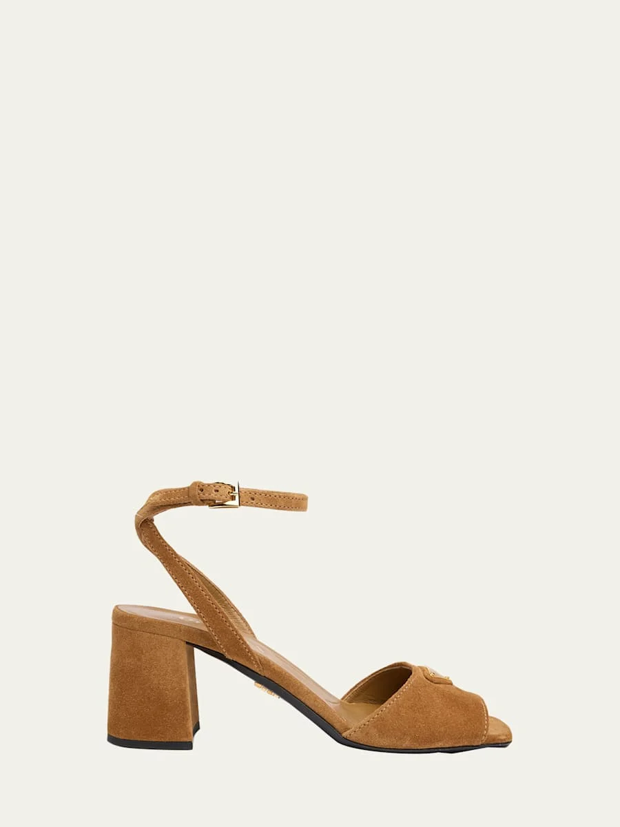 65mm Triangle Logo Suede Block-Heel Sandals