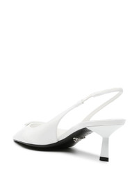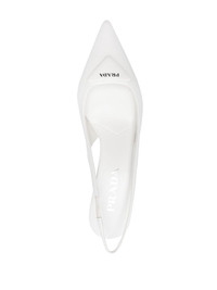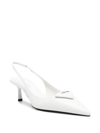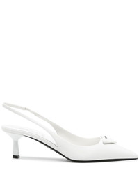 75mm triangle-logo slingback pumps Highlights - White - Leather - Triangle logo applique - Slip-on style - Pointed toe - Elasticated slingback strap - Leather lining - Branded footbed - 75mm sculpted heel - Authenticity qr code Composition Outer: Leather 100% Sole: Leather 100% Lining: Leather 100% SIZE & FIT Measurement HEEL 2.36 in(6 cm) WIDTH 10.23 in(26 cm)
