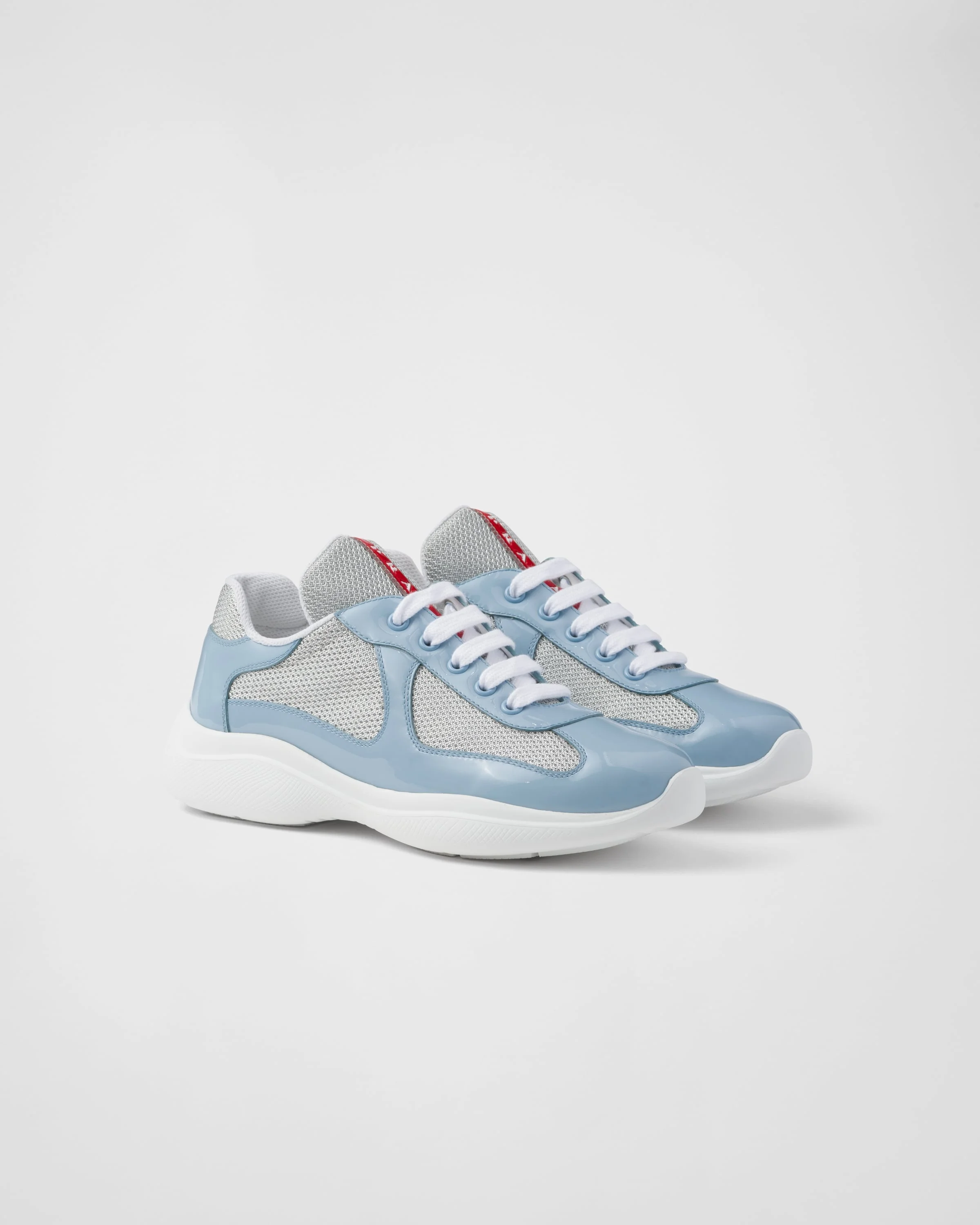 The iconic design of Prada America's Cup combines timeless lines and innovative materials. Cotton laces and an optical patterned tread enhance the product decorated with the Prada Linea Rossa logo badge. - Product code: 3E6420_ASZ_F0076_F_B025 - Technical fabric lining - Prada Linea Rossa latex logo badge - Flat cotton laces - 25 mm rubber sole - Tread with optical pattern - Removable leather-lined insole - Imported MATERIALS Main material: Calfskin