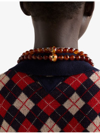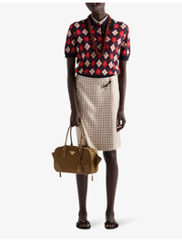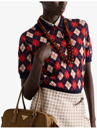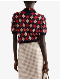 The menswear-inspired silhouette of this polo shirt combines classic details and retro influences. The intarsia knit garment made of cotton features an argyle motif and the simple yet iconic shape of the triangle logo. - Product code: P24G2S_15HT_F0008_S_OOO - Short sleeves - Argyle knit intarsia - Boxy fit - Ribbed knit collar - Regular shoulder - Ribbed knit hem - Knit triangle logo - Front button closure - Imported - The model is 178 cm tall and wears a size 38