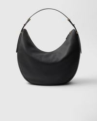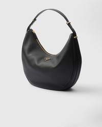 The classic hobo bag is reinterpreted with a current design that plays with emphasized volumes and curvy lines. An extremely soft shape characterizes the roomy silhouette with adjustable handle, enriched with sleek details and brightened by metal hardware. The enameled metal triangle logo adds a distinctive signature touch to the versatile and contemporary accessory. - Product code: 1BC218_2CYS_F0002_V_OVO - Adjustable leather handle Maximum length 48 cm - Minimum length 36 cm - Maximum drop 38 cm - Minimum drop 32 cm - Metal hardware - Enameled metal triangle logo on the front - Zipper closure - Logo-print nylon lining with patch pocket - Imported Height: 26.5cm Width: 39cm Length: 8cm MATERIALS Main material: Calfskin