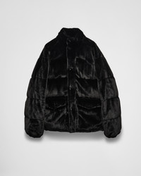 This Aspen puffer jacket blends the softness of down padding with the structure of an oversized silhouette with sporty details. The suede triangle logo at the back adds a modern touch. - Codigo do produto: PZS027_158P_F0002_S_OOO - Goose feathers and goose down padding - Oversize fit - Central zip and button closure - Standing collar with removable hood - Raglan sleeve and elastic cuffs - Patch pockets - Bottom with elastic drawstring - Suede domed triangle with metal logo at center back - The model is 179 cm tall and wears a size 38 Altura: 82cm MATERIALS Nylon