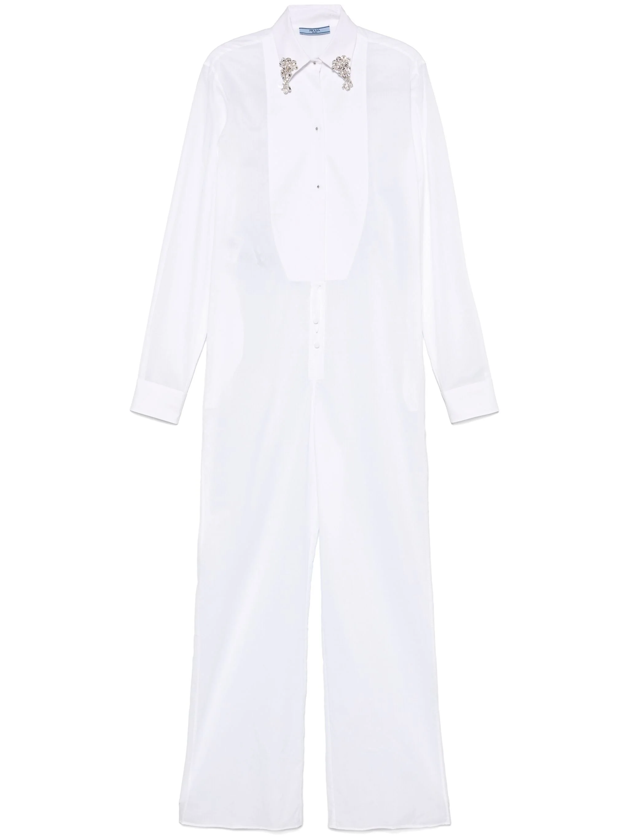 white cotton front button fastening pointed flat collar crystal embellishment long sleeves buttoned cuffs two side inset pockets straight leg - Color: WHITE - Made in: Italy - Designer Style ID: P263IT S OOO 16AD F0009 Composition and care Cotton: 100.0%