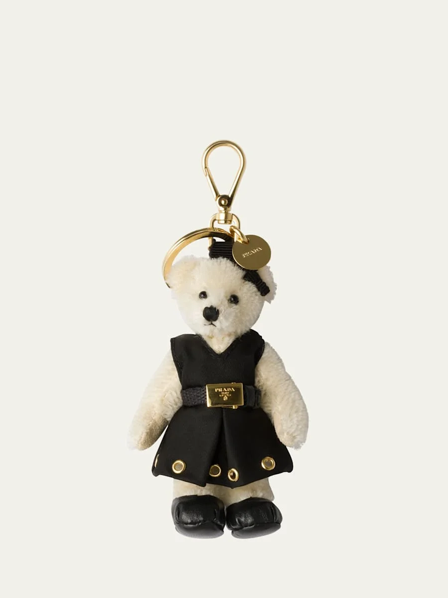 Prada bear keychain in cotton, mohair, recycled nylon, and steel Lobster clasp end Imported