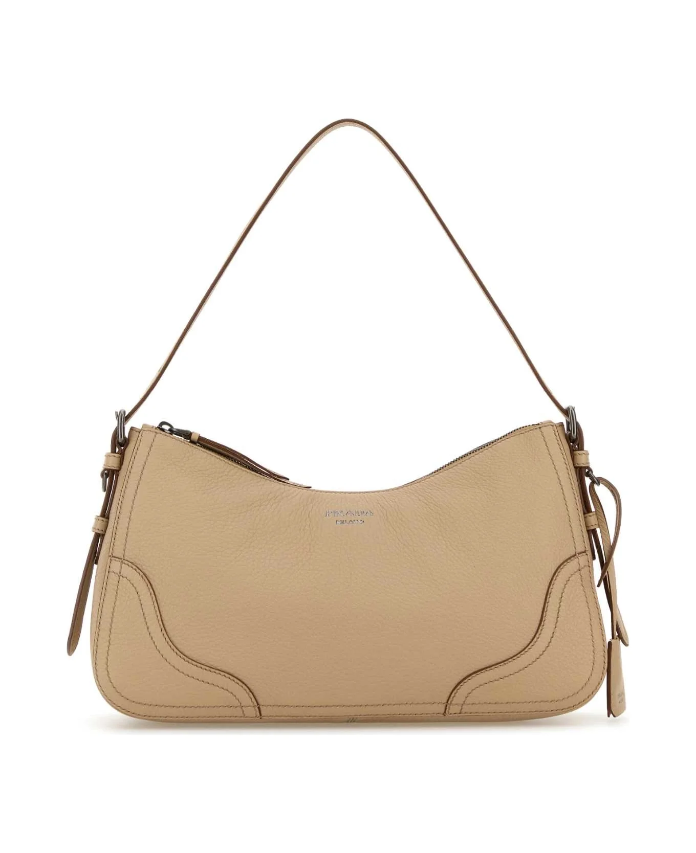 Beige Leather Shoulder Bag from Prada Made in: Italy Color: SABBIA Size and fit: - Width: 37 cm Height: 18 cm Depth: 13 cm Min shoulder strap length: 13 cm Max shoulder strap length: 33 cm Model number: 1BC2802HIKF0036