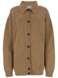 Biscuit cashmere cardigan Highlights - Brown - Cashmere - Knitted construction - Triangle logo - Classic collar - Long sleeves - Ribbed cuffs and hem - Front button fastening Composition Cashmere 100% Washing instructions Read Manufacturer Guidelines