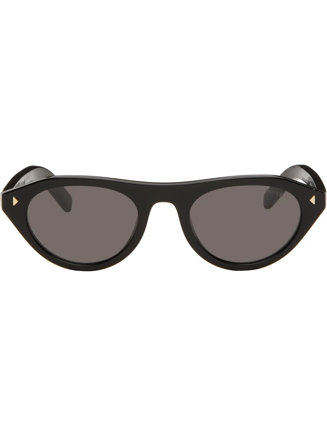 Oval acetate-frame sunglasses. · Gray lenses · 100% UVA/UVB protection, category 3 · Integrated nose pads · Inset logo hardware at face · Logo-etched inset metal plaque at temples · Includes case · Size: 51.21 145 Supplier color: Black Acetate, metal. Made in Italy 252208F005004
