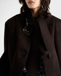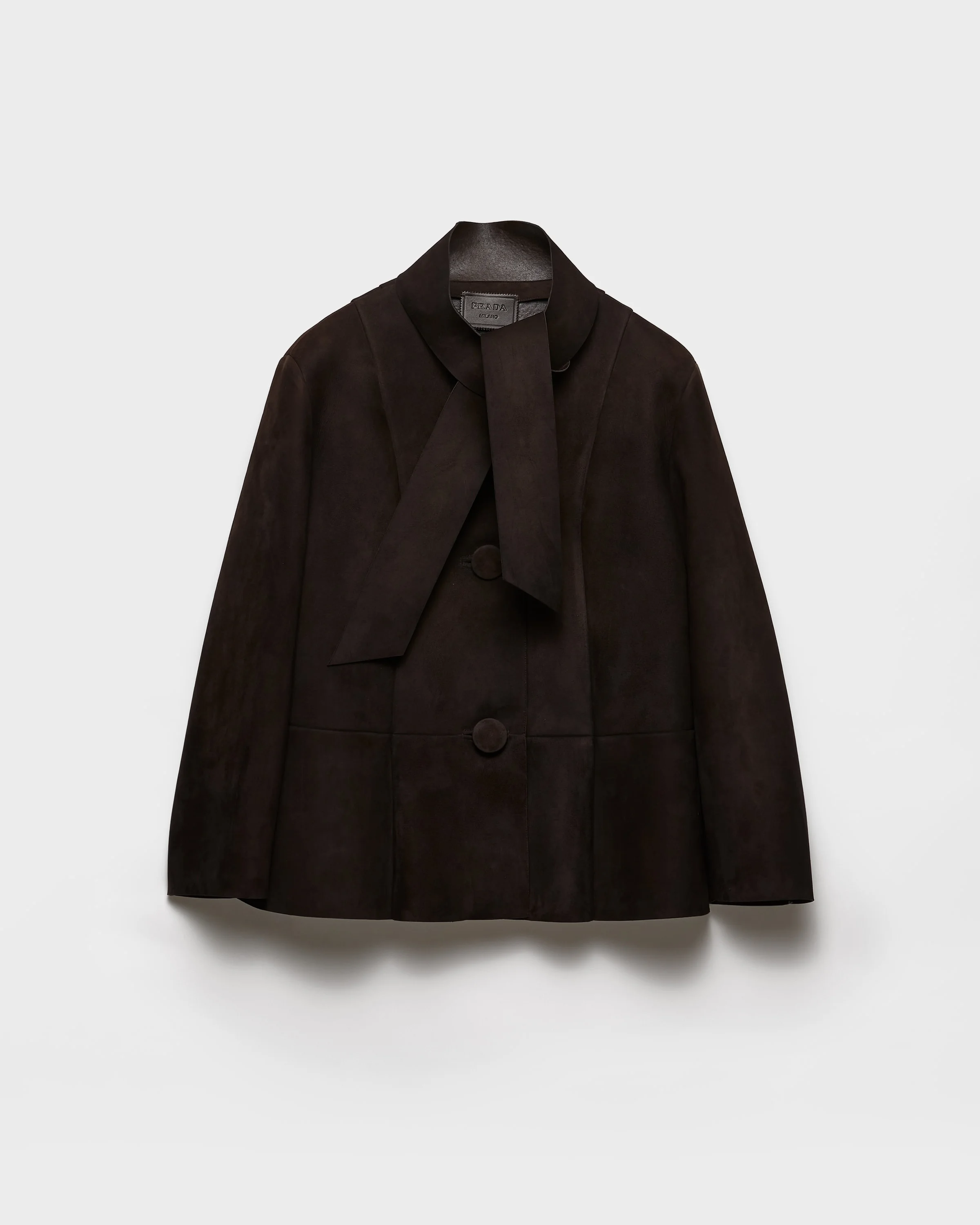 Pure lines and vintage-inspired details characterize this jacket with a sophisticated design, accompanied by a tonal scarf. The garment is made of suede that has undergone innovative processes that give it a soft, light look and add a three-dimensional effect to the style. - Product code: 55858_173B_F0192_S_OOO - Unlined garment - Oversized fit - Front button closure - Straight sleeves - Inseam pockets - Vintage treatment - With matching scarf - Imported - The model is 180 cm tall and wears a size 38 Height: 70cm MATERIALS Main material: Lambskin