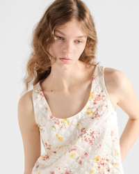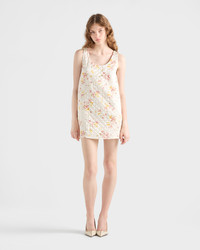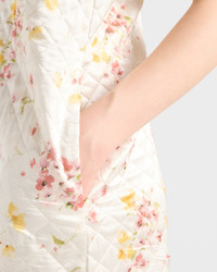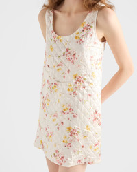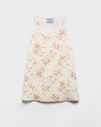 Romanticism and nostalgia blend in this short dress, crafted from quilted satin. The clean silhouette is enhanced by a delicate floral print that elevates the refined design with a vintage allure. - Product code: P3Q33_1758_F0638_S_OOO - “Bouquet” print - Flared fit - Lined - U-neck - Sleeveless - Side pockets - Fabric triangle logo - Straight hem - Imported - The model is 178 cm tall and wears a size 38 Height: 80cm MATERIALS Main material: 100% silk