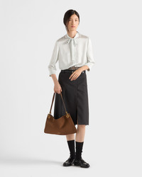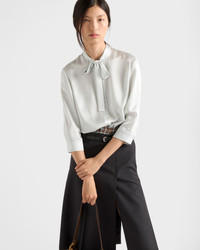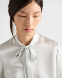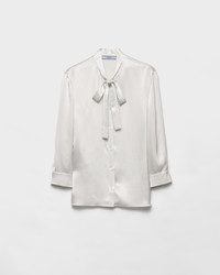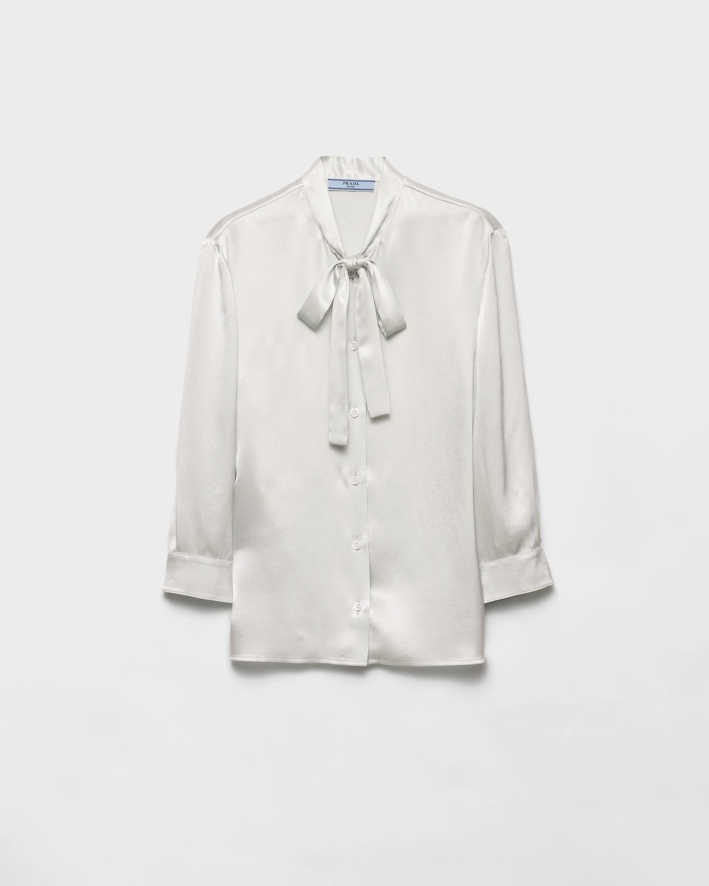 This light, fluid shirt made of satin crepe has a sophisticated silhouette enriched by the refined scarf collar. - Product code: P468I_16MV_F064W_S_OOO - Straight fit - Scarf collar - Front button closure - Long sleeves - Fabric triangle logo - Imported Height: 57cm MATERIALS Main material: 100% silk