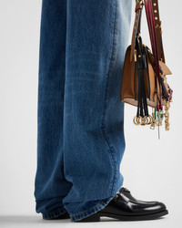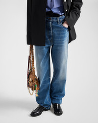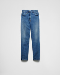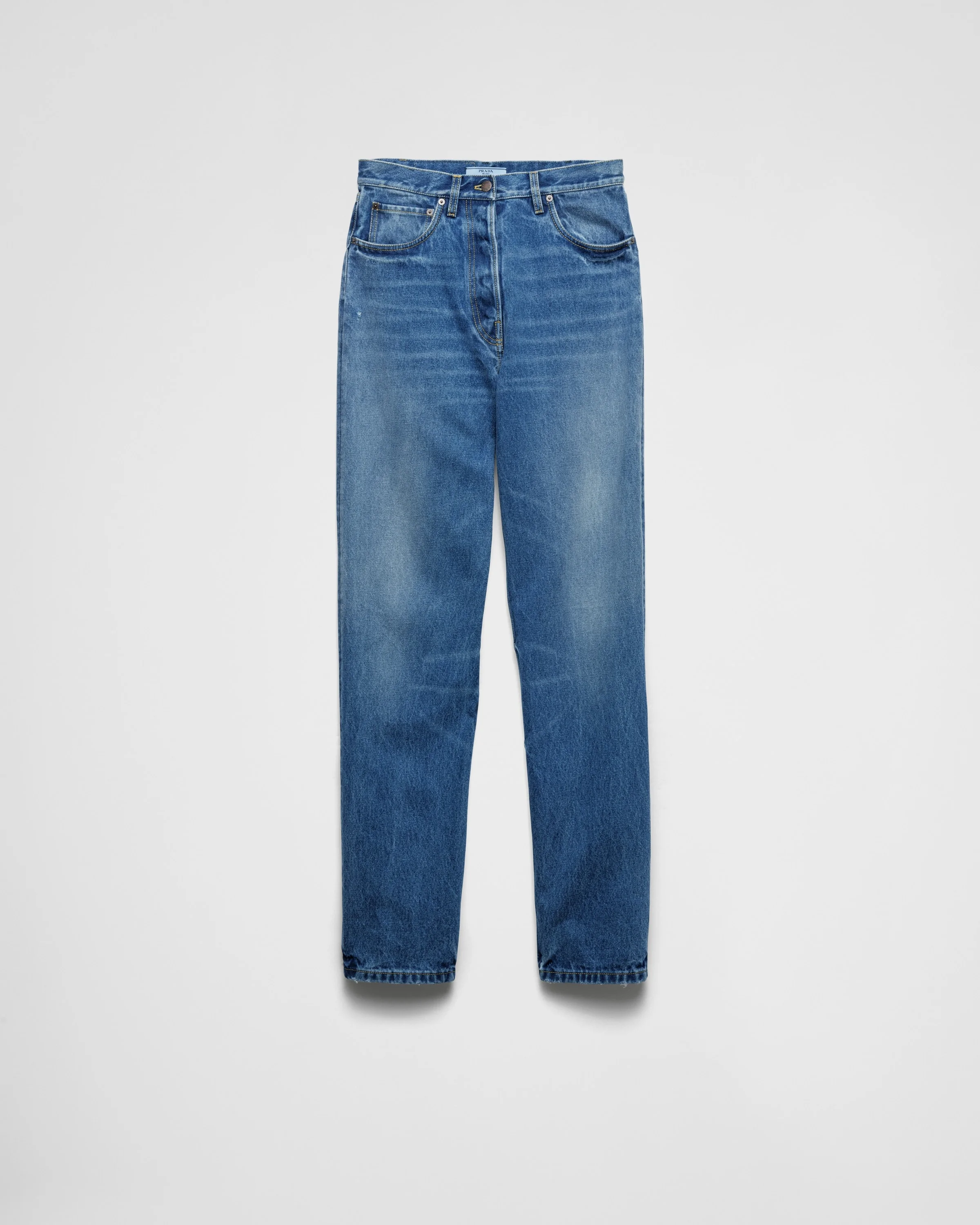 These menswear-fit jeans with a mid-rise waist and wide legs have a used finish that emphasizes the texture of the denim, giving the style vintage allure. The relaxed fit style with five pockets is completed by the archive logo printed on a label. - Product code: GFP522_16PK_F0V3N_S_OOO - Used denim treatment - Menswear fit - Mid-rise waist - Hem width: 21.5 cm, Size: 25 - Button fly - Contrasting stitching - Total length 110 cm, Size: 25 - Prada Milano logo label on the back - Imported - The model is 178 cm tall and wears a size 38 Height: 116cm MATERIALS Main material: 100% cotton