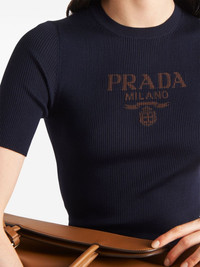 logo-jacquard silk top Highlights - Midnight blue - Silk - Ribbed knit - Jacquard logo motif - Crew neck - Short sleeves Composition Silk 100%