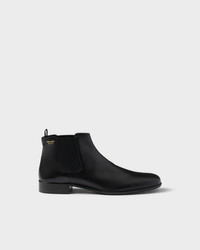 Bold minimalism and urban charm: these leather booties celebrate the precision of Prada savoir-faire with a refined, timeless design. - Product code: 1T301O_582_F0002_F_025 - Upper with elasticized side gusset and pull tab on back - Screen-printed logo - Boot leg: 10 cm - Leather and monoblock rubber sole with hot-stamped logo - Heel height: 25 mm - Imported MATERIALS Main material: Goatskin