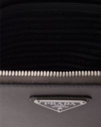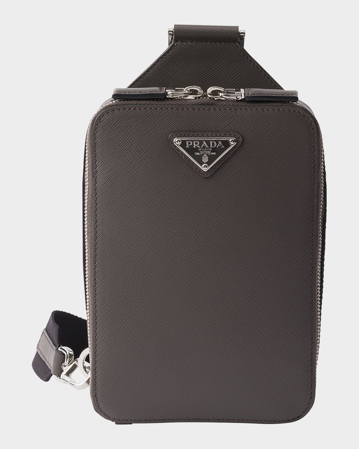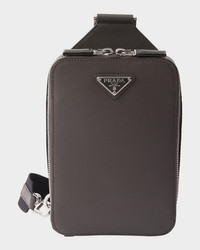 - Prada "Brique" crossbody bag crafted in elegant Saffiano calfskin leather with logo-print nylon tape - Adjustable crossbody strap - Two-way zip top closure - Signature enamel metal triangle logo - Interior, one slip pocket - Logo-print nylon lining - Approx. 7.9"H x 5.5"W x 1.6"D - Imported