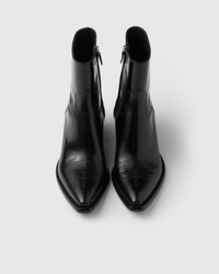 Texan ankle boots are reinterpreted through a design with strong lines that combines artisan tradition and innovation. The footwear is made of brushed leather that gives the style sophisticated, versatile allure. - Product code: 1T050O_055_F0002_F_045 - Leather lining - Screen-printed logo - Side-zipper closure - Boot leg 16 cm - Monoblock leather and rubber sole with enameled metal triangle logo - Heel height 45 mm - Imported MATERIALS Main material: Calfskin