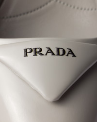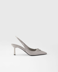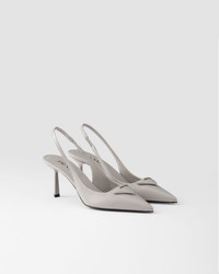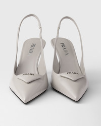 These pumps expressing sophisticated, feminine elegance are made of brushed leather, an emblematic material of Prada since the 90s traditionally used for luxury footwear. The triangle logo returns as a slightly padded leather detail and inspires the geometric line of the heel, which gives the silhouette a modernist note. - Product code: 1I901M_055_F073X_F_DD75 - Screen-printed leather triangle logo - Leather sole with metal lettering logo - 75 mm varnished heel - Imported MATERIALS Main material: Calfskin