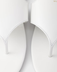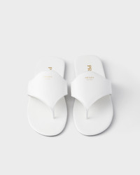 The clean, minimalist design of these thong sandals expresses a refined, contemporary style. The sleek lines of the design are emphasized by the elegant finish of brushed leather. - Product code: 1Y057O_055_F0009_F_005 - Enameled metal triangle logo - Monoblock rubber sole, 5 mm, with hot-stamped logo - Imported MATERIALS Main material: Calfskin