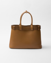 Clean lines and refined elements express Prada's dual aesthetic that moves between simplicity and detail, functionality and elegance. This leather bag with nappa interior summarizes the stylistic codes of the brand in a pragmatic yet sophisticated design. The roomy silhouette is characterized by a multifaceted soul, expressed by the interchangeable belt that enriches the accessory with a unique and contemporary touch. The lettering logo, embossed in 22 karat gold leaf, decorates the modern, versatile style. - Product code: 1BA416_2CY9_F03BH_V_DBO - Decorative belt with buckle - Leather handles - Detachable, adjustable leather shoulder strap Maximum length 110 cm - Minimum length 100 cm - Maximum drop 55 cm - Minimum drop 50 cm - Metal hardware - Lettering logo embossed on the leather front - Nappa leather interior with a center pocket - Imported Height: 27.5cm Width: 37.5cm Length: 14cm MATERIALS Main material: Calfskin